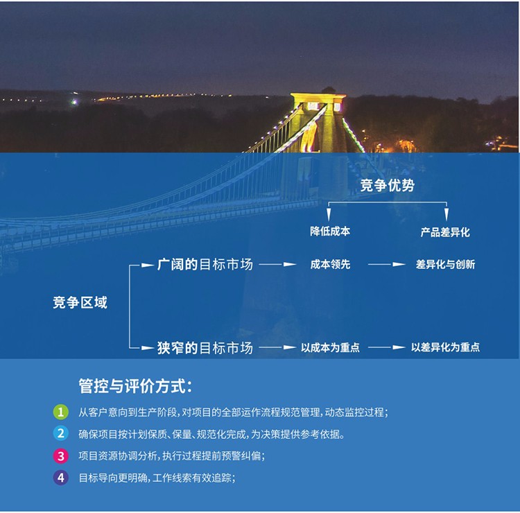 產品戰(zhàn)略包含:產品策劃、研發(fā)、項目管理、費用管理、資源匹配與預警,產品生命周期管理、結果反饋與評價。