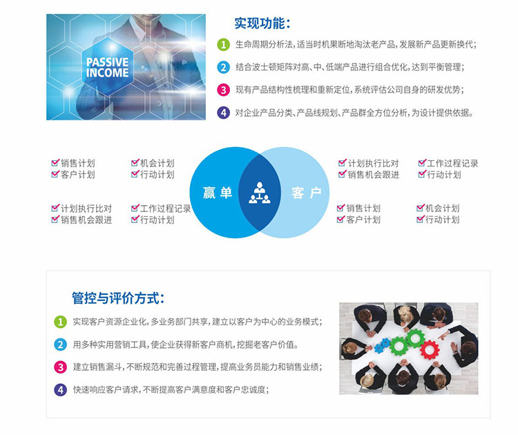 系統(tǒng)特色:實現(xiàn)360度全面了解客戶,通過客戶視圖不僅可以了解客戶的基本信息、聯(lián)系信息,了解客戶的業(yè)務往來信息,對銷售機會進行精確分析,甄別有價值客戶,從而加強跟單過程控制,提升簽約率。另外銷售跟進與操作評價,有助于銷售團隊的能力提升和潛能挖掘。